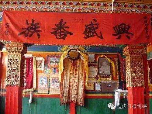 红二、六军团在中甸短暂停留的几天时间,严格执行党的纪律和民族、宗教政策,赢得了藏族中上层人士及广大群众的理解、支持和帮助,使红军部队得到了休整和补充。归化寺喇嘛夏拿古瓦等人更是为红军日夜奔走,为此,贺龙为夏拿古瓦颁发委任令。图为1936年5月贺龙颁发给归化寺喇嘛夏拿古瓦的委任令。