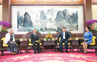 3月6日,国家主席习近平在北京中南海会见柬埔寨国王西哈莫尼和太后莫尼列。习近平主席夫人彭丽媛参加会见。新华社记者 张 铎摄 国家主席习近平6日在中南海会见柬埔寨国王西哈莫尼和太后莫尼列。 习近平指出,中柬两国人民传统友谊源远流长。中柬友好是由中国老一辈领导人和西哈努克太皇共同缔造和精心培育的,弥足珍贵。进入新的历史时期,中柬关系又增添新的活力,得到长足发展。去年我同西哈莫尼国王成功互访。当前,两国政治上高度互信,经济上互利合作,在实现国家发展中互帮互助,在国际和地区事务中密切配合。柬埔寨王室长期以来积极致力于中柬友好事业,为两国关系发展作出了重要贡献。我们愿同柬方携手努力,推动中柬全面战略合作不断迈上新台阶,更好造福两国人民。 习近平强调,为促进中柬关系继续深入发展,双方要保持高层接触势头,真正像走亲戚一样常来常往,密切沟通交流。双方要深化互利务实合作,加强发展战略对接,大力推进重点项目合作。双方还要加强多边事务协调,继续为维护地区稳定和中国—东盟合作大局作出贡献。 西哈莫尼和莫尼列表示,柬中友谊根深蒂固,历久弥新。习近平主席去年对柬埔寨的历史性访问有力地巩固了柬中友谊、推进了柬中合作。柬埔寨王室、政府和人民感谢中方长期以来对柬埔寨王室的深情厚谊,对柬埔寨国家经济社会发展的大力支持。柬埔寨王室将继承西哈努克太皇开辟的对华友好政策,积极推进两国关系不断向前发展。 习近平主席夫人彭丽媛、国务委员杨洁篪等参加会见。(人民日报 记者 李伟红) |