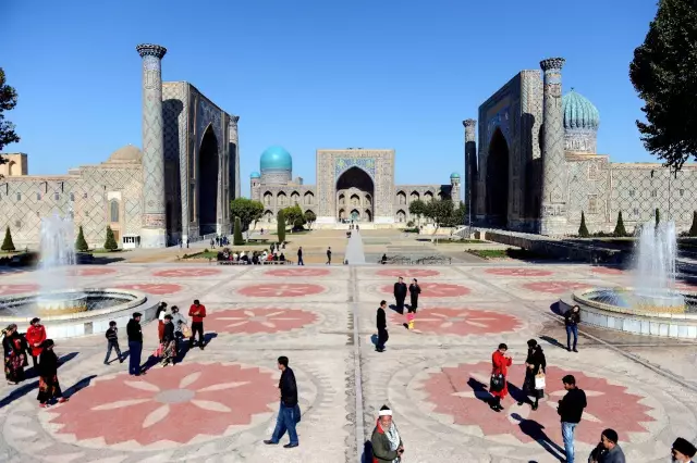 兀鲁伯天文台 新华社记者沙达提摄 习近平还参观了位于撒马尔罕市中心的列吉斯坦广场建筑群。这里曾是古丝绸之路上闻名遐迩的集市,一时商贾云集、文化交融。参观时,手工匠向习近平赠送他们耗时8个月特意织就的丝毯。习近平表示感谢:一针一线都体现出你们对中国人民的深情厚谊。