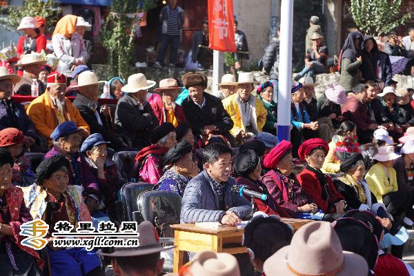 11月6日,十九大代表和勋在维西县塔城镇启别村宣讲党的十九大精神,把十九大的意义,大会作出的部署等精神传达到各族群众之中。当天,正值该村举办重阳节庆祝活动,全村群众聚集于此,为老年人送上吉祥的祝福。(彭跃辉 摄影报道)