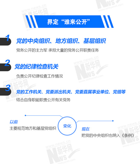 “这样既增强了党内事务的公开性和透明度,又照顾到了保密工作需要,比较符合实际。” 马怀德表示。 甄小英认为,这划清了党务公开与保密纪律的界线,党务公开的内容空前全面广泛,彰显了党在推进党务公开、党内民主方面的决心和力度。 公开主体实现全覆盖开出党务公开“项目清单”