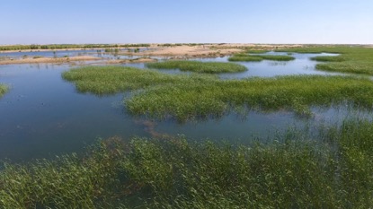 昔日家乡大变样 搬到巴音温都尔嘎查以后,交通方便了,水电通了,有了耕地,但乌兰纳日发现,习惯放牧的他们,对种地并不擅长。 于是她们一家还是选择养羊,弟弟那仁满达胡一家则选择继续养牛,生活逐渐变好。 2014年,他们曾经居住的家乡也开始发生了变化。 黄河从杭锦旗过境是249公里,每年要经历流凌封冻和开河流凌两个过程,凌汛期长达120天,凌汛期平均槽蓄水量在14亿立方米左右。在大量的水资源白白浪费的同时,比邻黄河的库布其沙漠却又因为没有充足的水资源支撑,湖泊萎缩,绿洲沙化,面临着生态保护的重重难题。 2013年,一份《杭锦旗库布其沙漠重点水生态综合治理项目可行性研究报告》决定引水治沙,变水害为水利:在黄河凌汛高水位时将凌水引入沙漠低洼地,形成水面,改善沙漠生态环境,达到减轻防凌压力和治沙双赢目的。 从2016年至2018年,经过几次分凌,沙漠里形成了面积11.3平方公里的水面,36平方公里的保护湿地,沙水相连的生态自然格局形成。