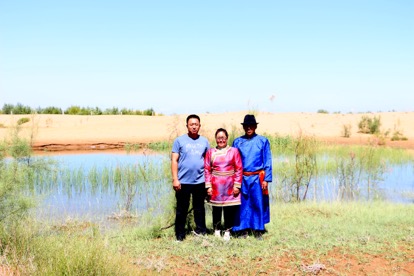 乌兰纳日(中)、那仁满达胡(右)和宝德斯三姐弟在湖区旁拍照留念 引水后项目区周边水资源涵养量也同时增加,2016年项目区周边种植了14平方公里的树,成活率超过90%,如今已形成林地。 返回家乡 养“野牛”开牧家乐 项目区生态得到恢复后,乌兰纳日说,很难相信昔日的家乡也变得这么美。 家乡不仅变美了,原来的牧民们还成了生态恢复后的受益者。 牧民那仁满达胡开始发展“野牛”养殖。“野牛”即野化的、原生态生长的牛,2013年前以前,那仁满达胡养着200多头黄牛,受生态环境限制,规模无法扩大,养三年才能长到200多斤。如今,有了水的沙漠变成了好牧场,开春把牛放出去,等秋冬的时候收回来,就能长到300多斤,一头牛能多卖4000多元。 如今,那仁满达胡养了600多头牛,同时还帮姐姐乌兰纳日和弟弟代养着200多头。他在自己长大的地方,搭起了蒙古包,开起了牧家乐,因为这里不仅生态变好了,路也即将修通,到沙漠深处来玩的游客也多了起来。2017年,他家的年收入达到100多万元。 今年,他计划再搭一座蒙古包外,把自己小时候 |