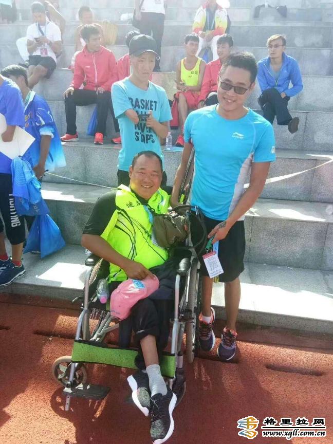 和学新是维西县维登乡小甸村人,幼时患有小儿麻痹症,经多方医治无效,至今无法直立行走。他通过前期的艰苦训练,在本届运动会上获得标枪第二名和铅球第三名的好成绩。 (和向东 和志忠 摄)