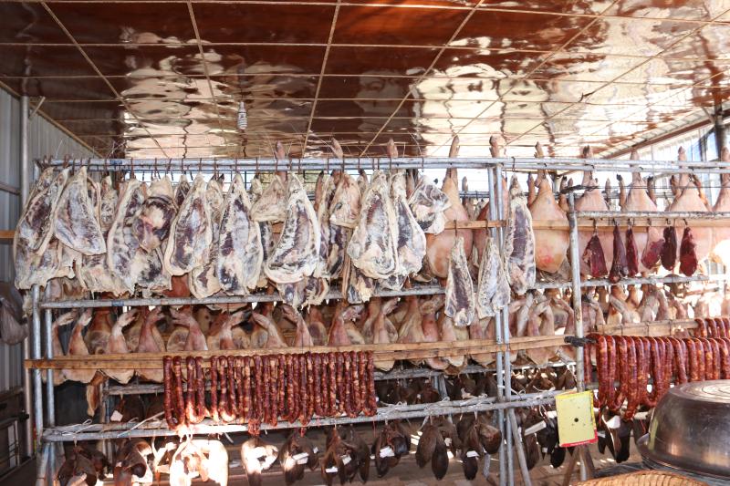 立冬刚过,又是一年腌制火腿的最佳季节。很多维西人家都会选择在这几天腌制火腿。 今天,记者来到了维西腌制传统火腿的杨云美家,杨云美被顾客们亲切的称为阿松妈,腌制售卖火腿已经十来年了,在保和镇早已是小有名气,只要一说阿松妈家的火腿,品尝过的人都交口称赞。打开杨云美家的库房大门,阵阵火腿的香味就弥散开来,只见腌制好的火腿按照腌制时间的长短,整齐地挂满了整个库房。 据杨云美介绍,用传统的手法腌制火腿必须是在低温条件下进行,立冬前后是最佳时期,他家丈夫作为一个有十多年的火腿腌制经验的老师傅一天最多也就能腌制15只左右。 走进杨云美家,只见她的儿子李咏松正在腌制今年的火腿。他们选择的是土猪后腿,先将青稞酒均匀地喷洒在鲜腿肉上,让酒慢慢渗进猪肉当中,逼出多余的血水达到除菌除腥的效果。盐的用量讲究精准,根据火腿的大小按照一定的比例将称量好的盐均匀地涂抹在火腿上,用力揉搓按压,这样重复至少三次,直到盐涂满整只火腿。最后,将涂满盐的火腿轻轻地挂在通风背阴的地方慢慢等着下一步的工序。 杨云美告诉记者,一只火腿的腌制除了等待还要经历整形、上盐、翻腿、风干等十几道工序,整个过程最少需要一到两年的时间。为了把火腿做好,她在原材料上严格把关,选用土猪的后腿,并对腌制的十几道制作工序一丝不苟,在火腿腌制上,她不使用任何添加剂,仅凭借着一把盐以最传统的方式做最传统的火腿。她说:“做维西传统味道的火腿是我的初衷,我也不跟其他同行比数量,我只想做出维西最传统的火腿味道,让更多人能吃到传统的火腿味,让在外地的维西人记住乡愁的味道,我家现在除了腌制火腿之外还腌制猪头、吹肝、香肠等,回头客还是有很多。” 据了解,杨云美家一年腌制近600只火腿,远销上海、杭州等地,每斤火腿售价可达30元左右,今年销售额已突破40万元。 |