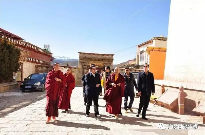 在松赞林寺,齐建新向广大宗教界人士拜年,他指出,松赞林寺要继续发扬爱国爱教、服务社会的优良传统,增强国家意识、责任意识、法治意识,更好地发挥宗教界人士和广大信教群众在促进迪庆经济发展、文化繁荣、社会和谐等方面的积极作用。齐建新一行还同正在值勤的尼旺宗消防中队的指战员亲切交谈,询问大家的值班值守情况,并到宿舍察看指战员的住宿情况,齐建新特别强调,要做好春节期间寺院的消防工作,落实好相关要求,在服务百姓过好春节上起到好的作用。
