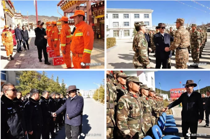 新春佳节前夕,州委副书记、州长齐建新,州政协主席杜永春,州委常委、州委统战部部长苗有发,州政府副州长、州公安局局长张春泽一行先后到松赞林寺、武警迪庆支队、迪庆州消防支队、迪庆州公安局、武警云南总队机动第二支队检查春节期间安保维稳工作,并看望慰问坚守一线的值班值守人员,向大家致以诚挚问候和新春祝福。