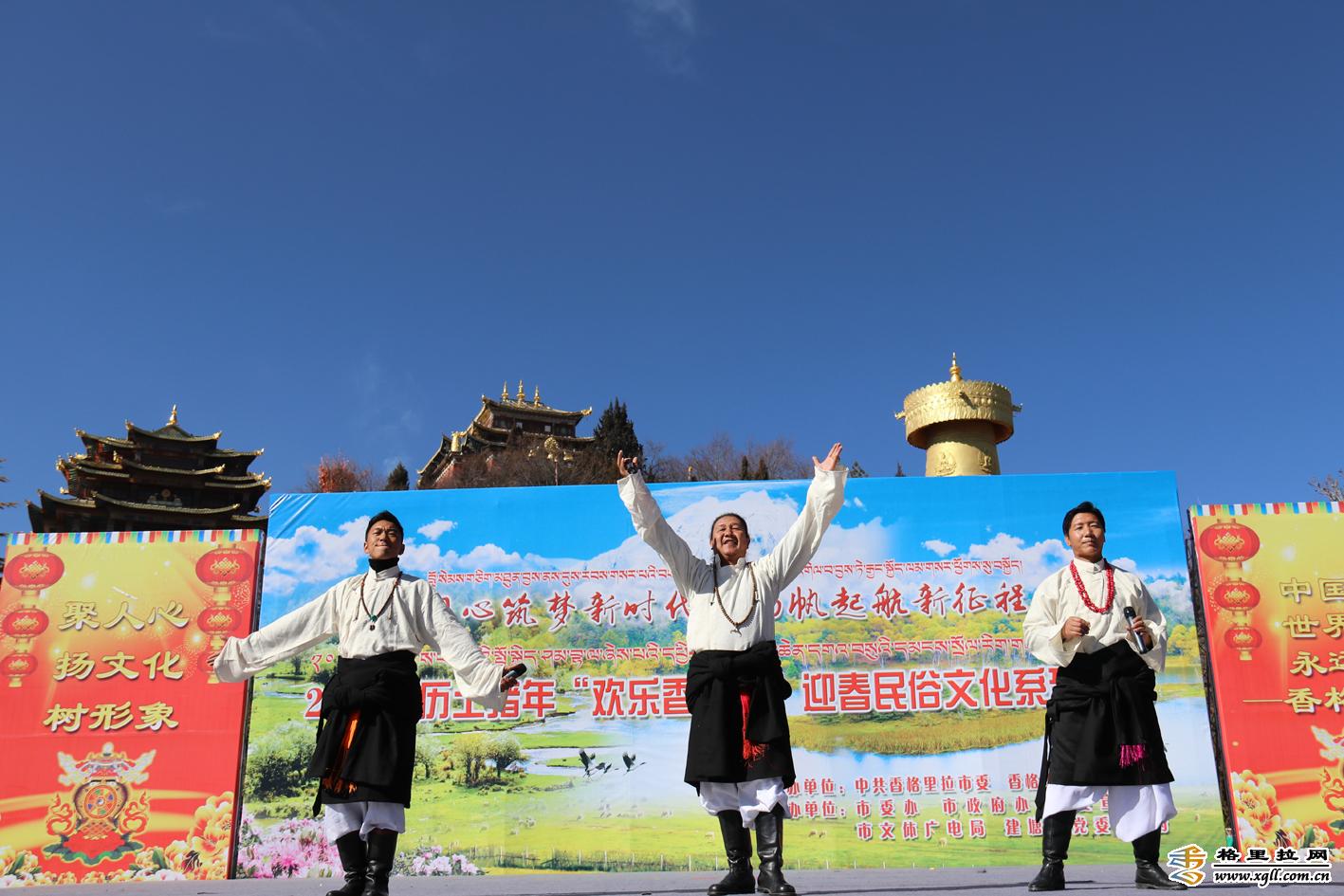 热情奔放的《香格里拉锅庄》《欢乐的热巴》,展现东巴文化的舞蹈《东巴祭祀》,歌唱新时代新生活的《新年好》《吉祥酒歌》……一个个精彩的节目,一首首悠扬的歌曲赢得了观众们热烈的掌声。