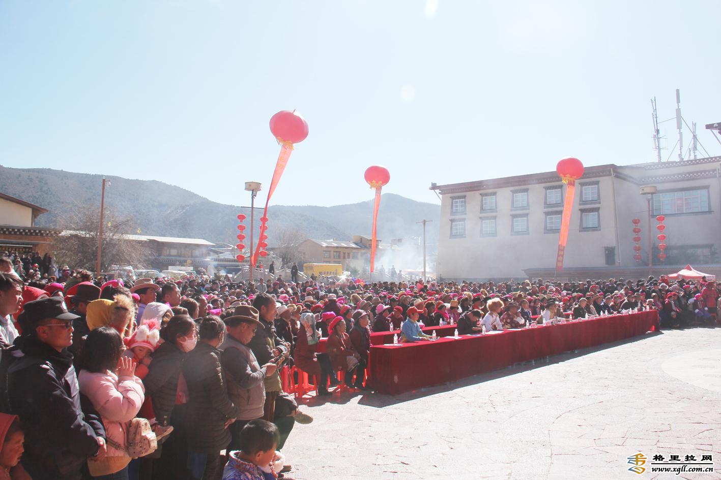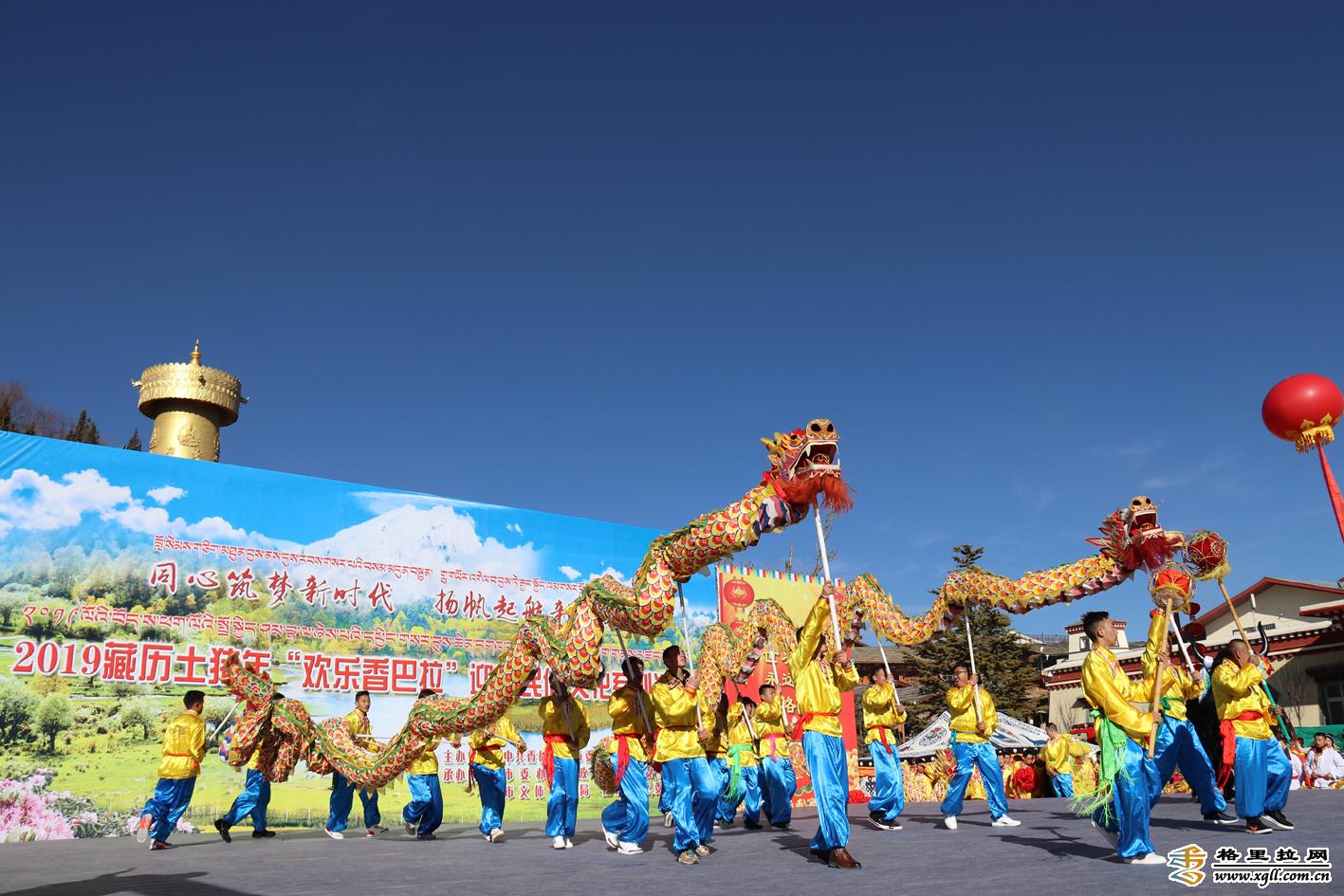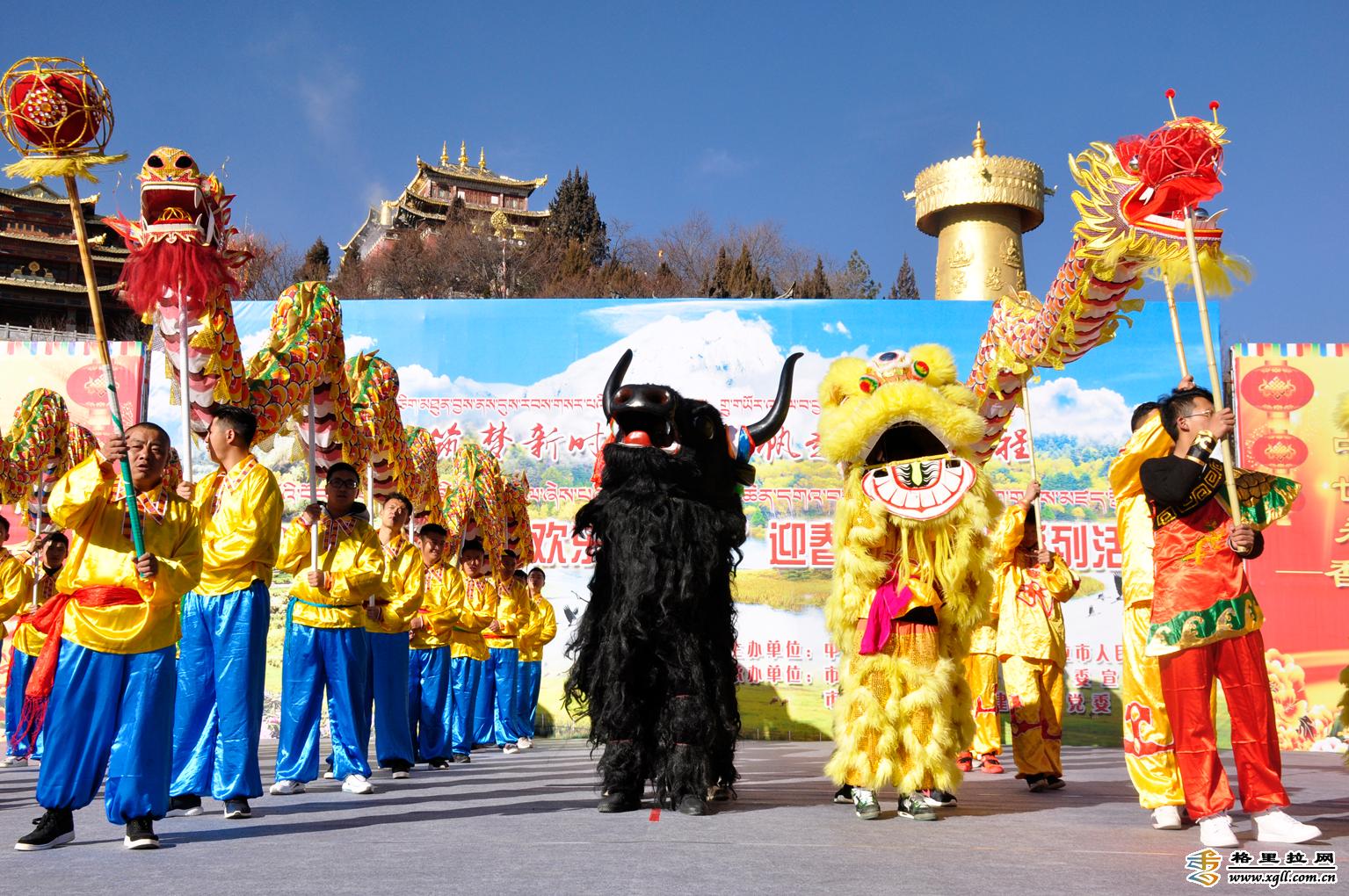 上午10时,活动正式开始,州政协主席杜永春,州委常委、州委统战部部长苗有发,州委常委、迪庆军分区政委王文佳等领导出席活动。苗有发宣布“欢乐香巴拉”民俗文化系列活动开幕。出席活动的领导还为居住在建塘镇的80岁以上老人们敬献哈达,祝老人们春节快乐、身体健康,并为古城社区的龙狮表演队挂红,祈福新的一年国泰民安、风调雨顺。随后来自独克宗古城各社区的龙狮表演队以精彩的耍龙舞狮表演为活动拉开了序幕。