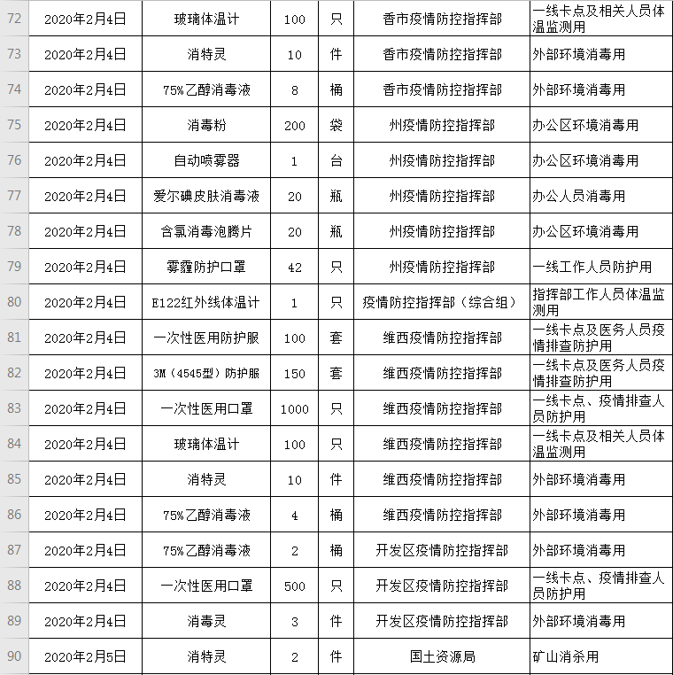 迪庆州委州政府应对新冠肺炎疫情工作领导小组指挥部疫情防控资金物资筹措分配结存情况公示