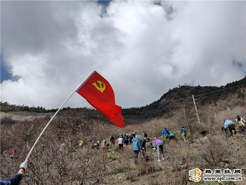 ▲ 近日,德钦县直单位开展2020年义务植树活动,在县城附近的日因卡村民小组面山地带种植11000多株雪松。县林草局按照各单位人数划分绿化区,90多个单位参与植树,有的挥镐挖坑,有的搬运树苗,有的提水浇水,现场热火朝天。(江初 摄) |