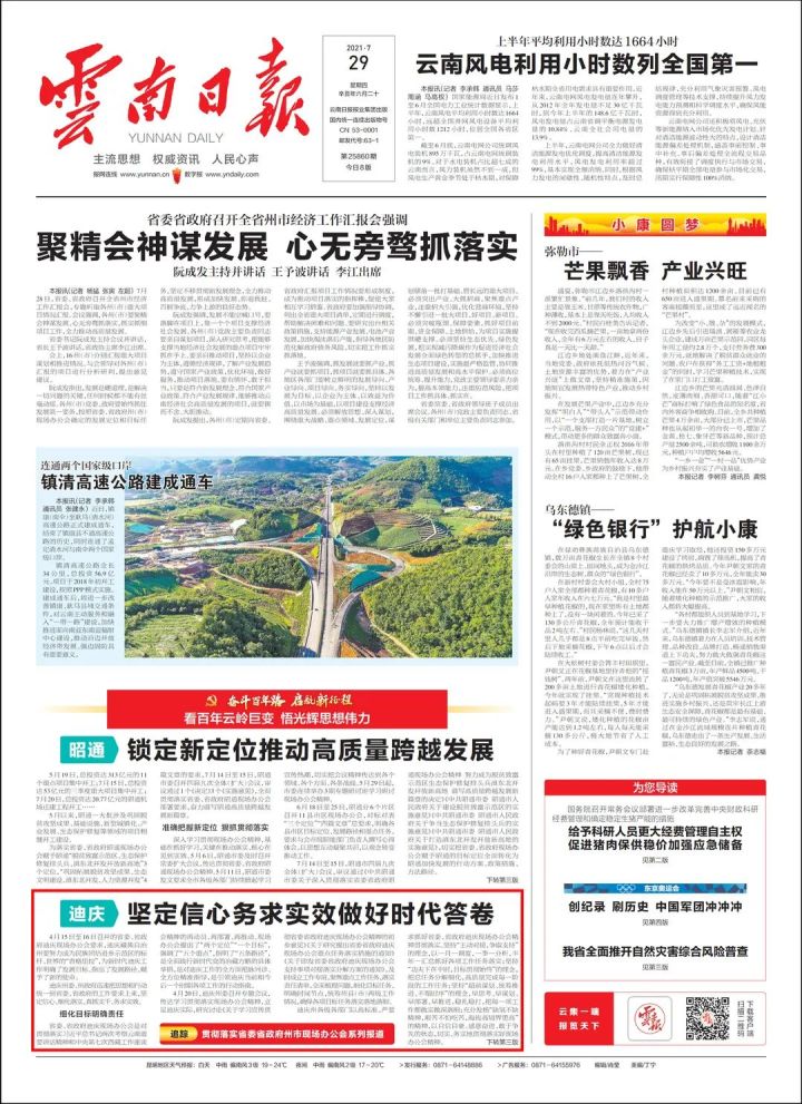 7月29日 《云南日报》头版刊发 贯彻落实省委、省政府 州市现场办公会系列报道文章 《迪庆:坚定信心务求实效做好时代答卷》 4月15日至16日召开的省委、省政府迪庆现场办公会要求,迪庆藏族自治州要努力成为民族团结进步示范区的标杆、世界的“香格里拉”,为新时代迪庆工作明确了发展目标、指出了发展路径、赋予了新的使命。 迪庆州委、州政府迅速把思想和行动统一到省委、省政府的工作要求上来,坚定信心、细化落实、真抓实干、务求实效。 省委、省政府迪庆现场办公会是对贯彻落实习近平总书记两次考察云南重要讲话精神和中央第七次西藏工作座谈会精神的再动员、再部署、再推动。现场办公会提出了“两个定位”“一个目标”,强调了“五个重点”,指明了“五条路径”,是全面践行新时代党的治藏方略的具体举措,是对迪庆工作的全方面把脉问诊、全方位精准指导,是引领迪庆当前和今后一个时期各项工作的行动指南。 4月20日,迪庆州委召开专题会议,传达学习贯彻落实现场办公会精神,立足迪庆实际,研究讨论《关于学习宣传贯彻省委省政府迪庆现场办公会精神的初步意见》《关于研究提出省委省政府迪庆现场办公会重点任务落实措施的通知》《关于印发省委省政府迪庆现场办公会支持事项对接落实分解方案的通知》,及时成立工作专班,聚焦重点工作任务,落实责任清单,全面梳理问题,细化目标任务、明确时间节点,统筹州县(市)两级工作情况,确保各项目标任务落实落地落细。 迪庆州各级各部门以高标准、严要求抓好省委、省政府迪庆现场办公会精神贯彻落实。坚持“主动对接,争取支持”的理念,以一月一调度,一季一分析,半年一汇总抓好各项工作任务落实;坚持“功夫下在平时,目标贯彻始终”的理念,把总任务分解细化,高质量完成每一阶段的工作任务;坚持“超前谋划、统筹推进、不塌时序”的理念,早思考、早谋划、早部署、早推进,稳扎稳打,把每一项工作都做实做深落细;充分发扬“缺氧不缺精神,艰苦不怕吃苦,海拔高境界更高”的精神,以自信自豪、感恩奋进、敢于争先的状态,切实、务实地贯彻落实好现场办公会精神。 7月26日,迪庆州第八届委员会第十三次全体会议召开,全会审议通过了《中共迪庆州委关于深入贯彻落实省委省政府迪庆现场办公会精神努力成为民族团结进步示范区的标杆、世界的“香格里拉”的决定》《迪庆州关于建设民族团结进步示范区的标杆的实施意见》《迪庆州关于打造世界的“香格里拉”的实施意见》,坚持稳中求进工作总基调,立足新发展阶段,完整准确全面贯彻新发展理念,服务和融入新发展格局,推动高质量发展,紧紧围绕现场办公会作出的决策部署,进一步完善发展思路、明确工作重点。 建设民族团结进步示范区的标杆,迪庆州以“中华民族一家亲,同心共筑中国梦”为目标,以铸牢中华民族共同体意识为主线,以共同团结奋斗、共同繁荣发展为主题,以加强各民族交往交流交融为途径,把维护祖国统一、加强民族团结作为工作的着眼点和着力点,围绕8大任务、25项工作,确保民族团结进步示范区标杆建设落地落实、见行见效。实施政治引领工程,在加强党对民族工作领导上做标杆;实施长治久安工程,在筑牢祖国西南安全屏障上做标杆;实施培元固本工程,在铸牢中华民族共同体意识上做标杆。深入开展“一日一播报”“一日一说法”“一周一访谈”常态化思想教育引领,与省内外有关高校和科研院所合作,加强中华民族共同体理论和历史研究。定期举办“铸牢中华民族共同体意识香格里拉论坛”,逐步形成常态化、品牌化、长期化且具有影响力的铸牢中华民族共同体意识学术交流平台。 迪庆坐落着雄奇险峻的雪山峡谷,分布着风采迷人的草原湖泊,生长着丰富多样的珍稀动植物,拥有“香格里拉”“三江并流”“梅里雪山”“茶马古道”4大世界级品牌。旅游业是迪庆发展的主引擎,也是打造世界的“香格里拉”的主要依托和最大优势。按照国际化、高端化、特色化、智慧化的标准,以一流标准完善基础设施、一流标准推进重大项目建设、一流标准建设高端酒店、一流标准提高管理水平的“四个一流”为主抓手,积极融入大滇西旅游环线,坚持高端高品质方向,把迪庆建设成世界顶尖的旅游胜地。同时,成立打造世界的“香格里拉”建设工作领导小组,建立由各级党委、政府主要领导任双组长的领导机制,全面负责本辖区世界的“香格里拉”建设的重大事项决定、重大项目组织、重大工作协调。领导小组每季度至少召开1次专题会议,全面研究部署建设相关工作。 蓝图已经绘就,使命催人奋进 迪庆州将全面贯彻新时代党的治藏方略 完整精准全面贯彻落实 省委、省政府迪庆现场办公会精神 统筹发展和安全 团结带领广大干部群众 同心协力,砥砺前进 抓好稳定、发展、生态和边疆稳固4件大事 在推动民族团结进步示范区的标杆 世界的“香格里拉”上不断取得新成就 走出一条符合迪庆实际的发展之路 奋力谱写雪域高原长治久安 和高质量发展新篇章 (云南发布) |