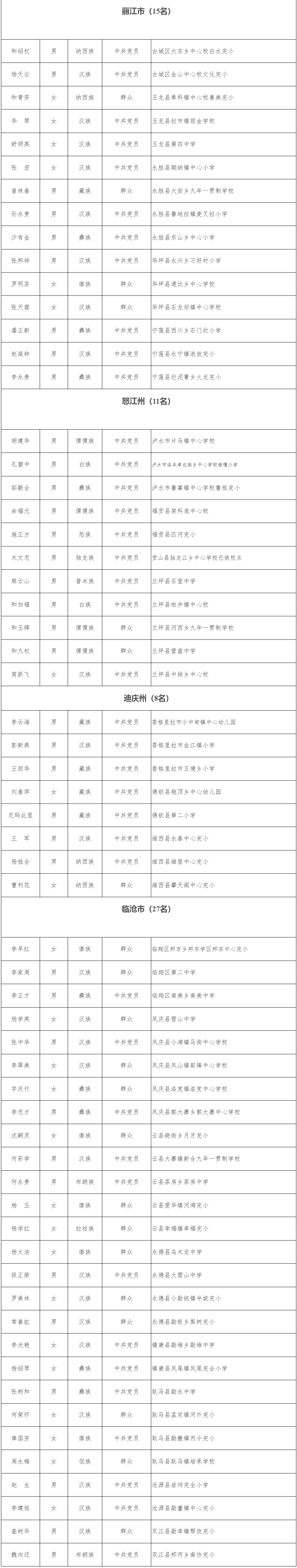 8月10日 云南省教育厅网站发布了 《云南省教育厅关于2021年度乡村学校从教20年以上优秀教师推荐人选的公示》 对500名 2021年度云南省乡村学校 从教20年以上的优秀教师推荐人选 予以公示 从2018年起 云南省每年在乡村学校 从教20年以上的在职教师中 遴选500名作出突出贡献的优秀教师 给予每人10万元奖励 鼓励优秀教师扎根乡村、终身从教 成长为人民教育家 截止目前 云南省已经连续四年 开展优秀乡村教师评选奖励活动 来源:云南发布 |
