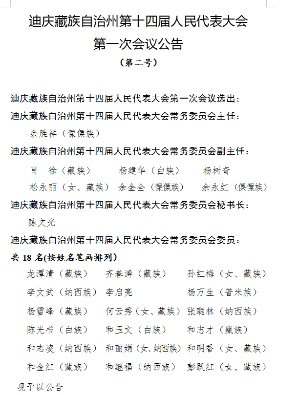 下一篇:迪庆藏族自治州第十四届人民代表大会第一次会议公告(第三号)