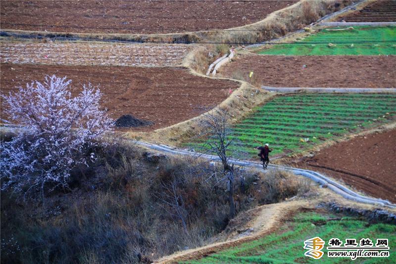 3月,香格里拉市尼西乡汤堆村桃花开始进入盛花期。一树树粉嫩的桃花点缀在古朴的藏族村落间,春意盎然。村民们正在田间地头忙着春耕,有的正在锄地,有的正在灌溉。 “今年,我在家门口的田地里种上了葡萄,看看能不能成功挂果。”村民孙诺正在地里忙着种植葡萄苗,他告诉记者:“以前,由于村里没有沟渠,农田无法进行灌溉,只能种植一些耐旱性强的农作物。近年来,政府在村里新修了田间沟渠,我们开始尝试着种植更多品种的农作物。”