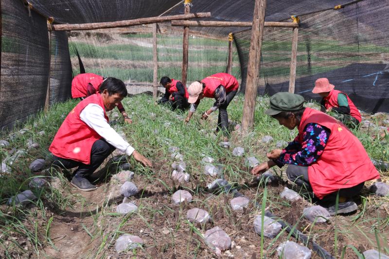 队伍是仲才建议成立的,这个“官”也是大伙推举的。“连队”的成员多半是村里的共产党员,这个连队的名字寓意是弘扬雪山雄鹰——七林旺丹一生爱党信党、忠于宪法、忠于国家、忠于人民,排除一切困难为群众做实事,团结群众促发展的精神。 知恩于心,感恩于行。连队成立之初确定的宗旨就是要全心全意为人民服务。 2021年4月,为充分发扬“雪山雄鹰感党恩连”的宗旨和志愿服务作用,结合新时代文明实践活动,“雪山雄鹰感党恩连”又更名为“雪山雄鹰感党恩志愿服务队”,仲才也由“连长”成为了“队长”。 1年多来,仲才队长和他的队员们志愿做了许多实事好事,当地各族干部群众向他们竖起了大拇指! 阳春三月,正是东旺乡胜利村采收羊肚菌的时节,在羊肚菌种植基地内,一朵朵伞状的菌子破土而出、长势喜人,可村民泽央却怎么也高兴不起来。“家里没有人采收,过了采收季就意味着一年的努力付诸东流,怎么办呢?”泽央的担忧,被仲才队长看在眼里、记在心里。 3月24日那天,仲才带领20多名队员来到泽央的羊肚菌种植基地,大家手拿刀片小心翼翼地帮忙她采收,才一会儿功夫,采收、装袋一气呵成,基地也因为这一抹“志愿红”变得格外热闹。