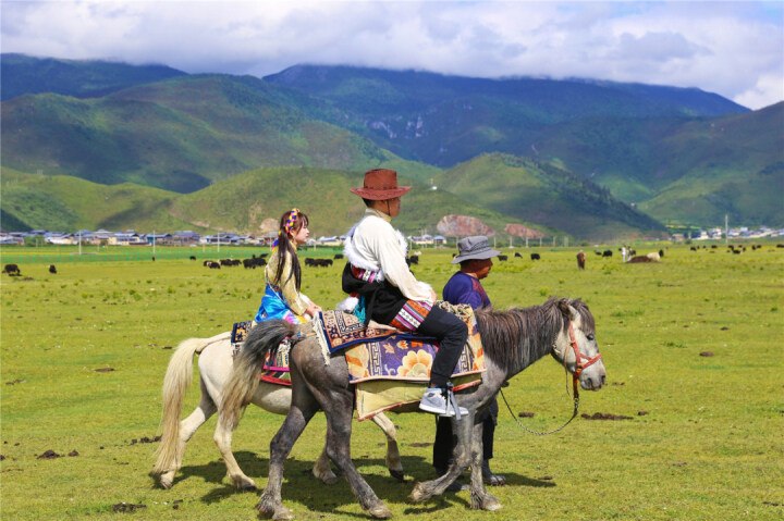 ![]() ![]() 夏日的香格里拉,绿草如茵、牛羊成群,各色小花铺满了草原,如诗如画。在石卡雪山脚下的从古马场里,游客们伴着微风习习悠然策马,很是惬意。(黄晓丽 摄影报道)