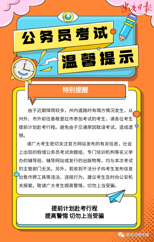 @迪庆考生,这份公务员考试温馨提示请查收!