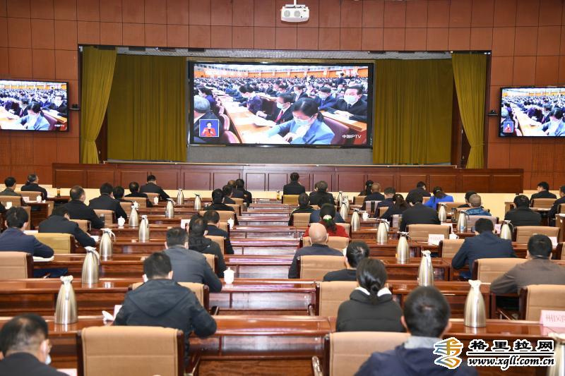 维西县党员干部集中在行政中心报告厅观看开幕会盛况。