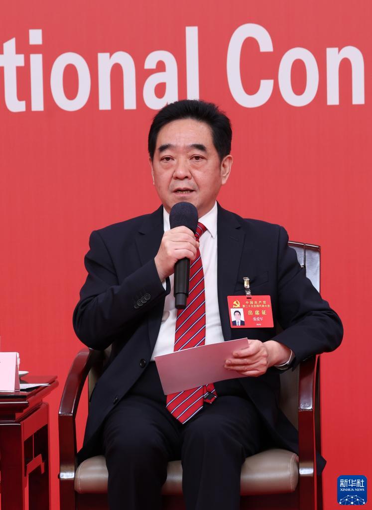 10月18日,中国共产党第二十次全国代表大会新闻中心举行集体采访。黑龙江、上海、江苏、浙江、安徽、福建、江西代表团新闻发言人出席,介绍代表团学习讨论二十大报告情况,并回答记者提问。这是福建省委常委、宣传部部长张彦在回答记者提问。新华社记者 张玉薇 摄 福建省委常委、宣传部部长张彦说,这几天代表们围绕习近平总书记作的二十大报告进行了热烈的讨论。大家一致认为,党的二十大报告反映全党意志,体现人民心愿,是一个好的报告,大家坚决拥护。 他向记者介绍了福建在生态文明试验区建设方面的成果。他说,党的二十大报告提出,必须牢固树立和践行绿水青山就是金山银山的理念,站在人与自然和谐共生的高度谋划发展。大家表示要牢固树立生态优先、绿色发展理念,持续深入推进和贯彻习近平生态文明思想。