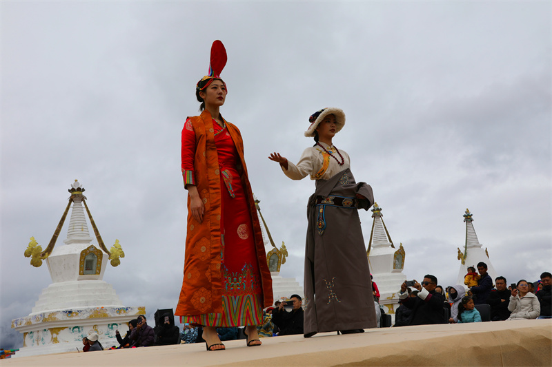 时装秀不仅有专业的超模在雪山脚下的T台走秀,还有本土的传统服饰展,传统与现代,民族与潮流的碰撞使活动更加精彩。