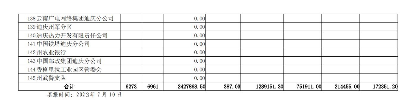 各县(市)党委、政府,州委各部委,州级国家机关各委办局,各人民团体,州属各企事业单位,省属驻州各单位: 为认真贯彻落实《迪庆州特色产品消费帮扶三年行动方案(2022—2024年)》(迪政发〔2022〕50号)的要求,持续深入开展消费帮扶,促进脱贫群众增收,全面推进乡村振兴取得新进展,州消费帮扶领导小组认真组织开展消费帮扶工作,分析工作开展情况,统计各县市、州直各部门上报数据,现将今年截至目前消费帮扶工作开展情况通报如下: 一、消费帮扶总体推进情况 截止2023年7月10日,全州完成消费帮扶4613.43万元。 按市县分:州级1267.79万元;香格里拉市707.67万元;德钦县1074.64万元;维西县1547.50万元,开发区15.82万元。 按类别分:消费帮扶超市和生产企业销售2624.66万元,全州电商网点销售832.00万元,州市(县)乡(镇)各部门采买556.77万元,上海帮扶采购600.00万元。 二、“832”平台采购任务完成情况 截至7月10日,全州各级预算单位共计433户(含州级268户)已报预留份额(食堂采购任务)172.65万元,预留比例达11.30%,工会采购任务859.52万元,其中州级261.81万元、香格里拉市264.26万元、德钦县123.63万元、维西209.82万元;食堂和工会两项采购合计1032.11万元,全州只有268户已完成食堂和工会采购共计501.58万元,产生交易504.12万元。 州本级123户预算单位中产生交易(产生采购)的仅有78户,未产生交易采购的有45户;香格里拉市117户预算单位中产生交易(产生采购)的有61户,未产生交易采购的有56户;德钦县96户预算单位中产生交易(产生采购)的有84户,未产生交易采购的有12户;维西县97户预算单位中产生交易(产生采购)的仅有45户,未产生交易采购的有52户。与6月份相比较,全州产生交易上升94户,但还有165户未完成交易。 三、工作要求 在下半年的工作中,各级各部门要根据州委州政府的部署和安排,一是结合职能职责,确保《行动方案》七大行动措施落实到位,确保消费帮扶工作取得实效;二是抓紧时间开展全州预算单位预留份额采购工作,务必在9月30日之前完成采购任务;三是切实做好消费帮扶数据统计,做到应统尽统,及时上报;四是要持续做好促消费工作,积极鼓励辖区生产主体企业、各超市和销售平台开展促销惠民活动。 附件: 1.迪庆州2023年消费帮扶统计汇总表 2.州直各部门2023年消费帮扶采买情况统计表 3.迪庆州2023年预留份额(832平台)交易情况统计表 迪庆州消费帮扶领导小组办公室 2023年7月10日
