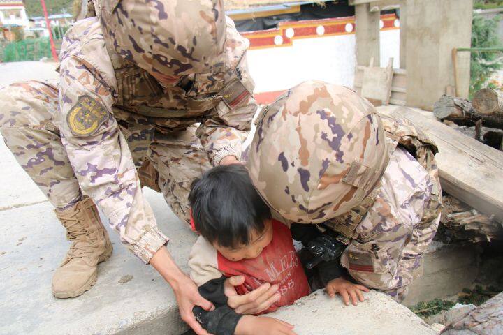 近日,驻守在香格里拉市东旺乡的武警云南总队机动某支队官兵们在训练时,突遇一名儿童被卡在乡村道路的排水沟中。因孩子不停的挣扎,头部被紧紧的卡在排水沟中,恰巧当时路上又有一台拖拉机驶来,很有可能给孩子造成二次伤害,情况十分危急。