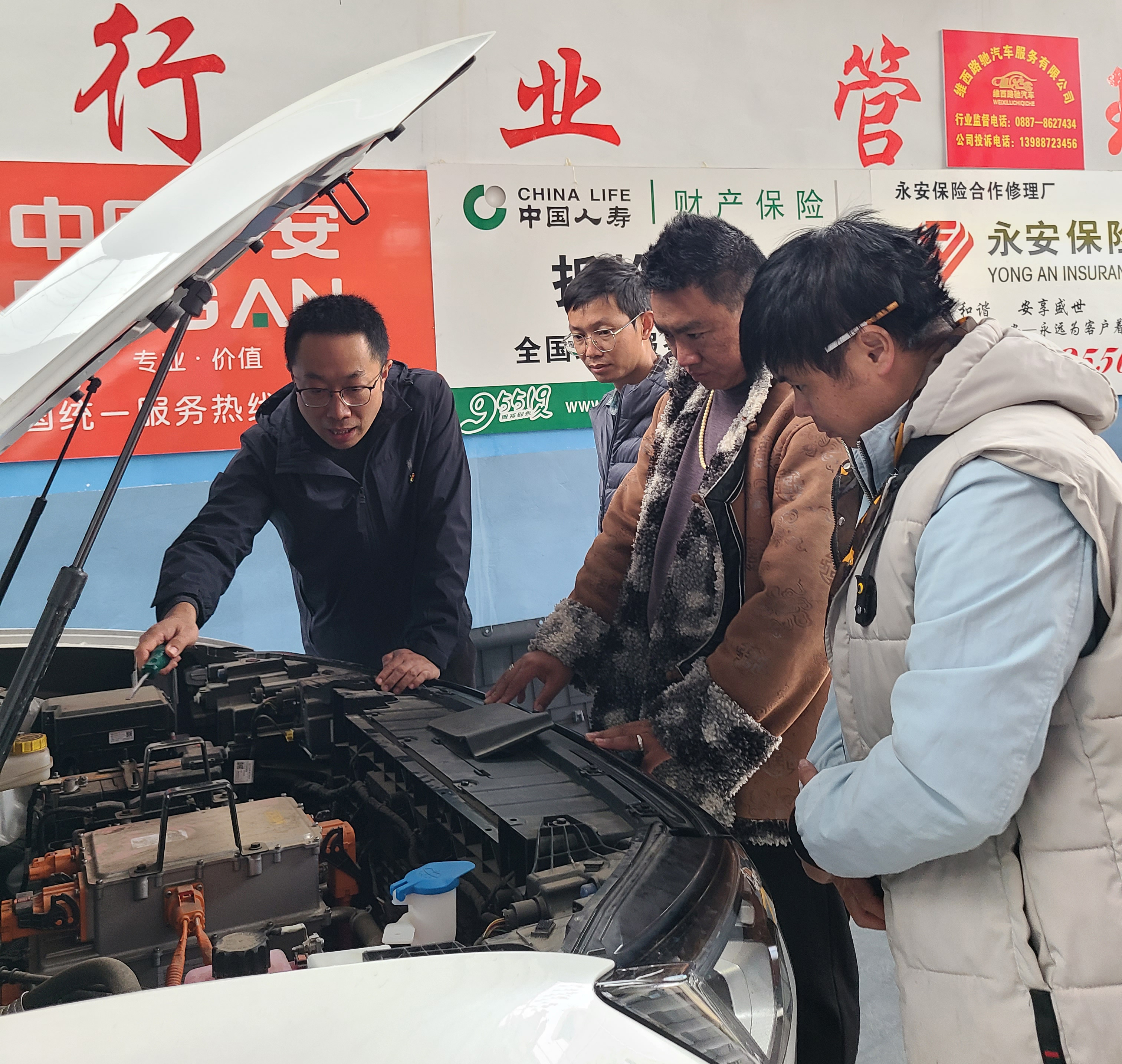 近日,云南工贸职业技术学院招生就业与培训处党支部、汽车工程系党支部到维西县开展新能源汽车检测与维修技能培训、摩托车维修技能培训,专业教师为学员们讲解了新能源汽车基本原理、新能源汽车基础维护及摩托车常见问题、处理办法等知识。培训注重理论与实践相结合,进一步增强了培训的针对性、实用性、有效性,真正做到让学员学有所获,掌握一技之长。图为教师为学员讲解新能源汽车维修知识。 |