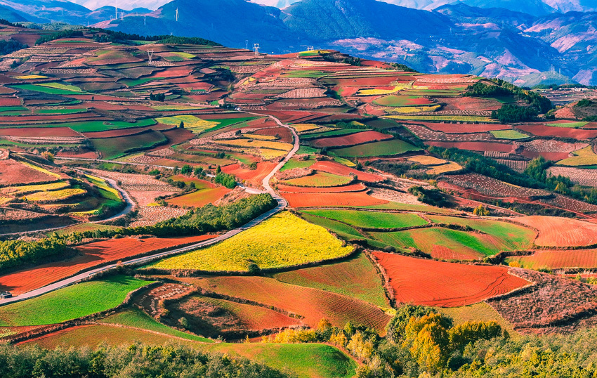 冬日的艳阳下,云南省昆明市东川区红土地镇的大地色彩分明。蓝天白云,变幻莫测的光线,亮眼的冬季作物,与红土地交相辉映。 这里又被权威专家公认为是全世界除巴西里约热内卢外最具气势、最为磅礴的红土地。 |