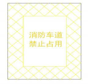 消防车通道路侧禁停标线及路面警示标志示例 2.在单位或者住宅区的消防车通道出入口路面,按照消防车通道净宽施划禁停标线,标线为黄色网状实线,外边框线宽20厘米,内部网格线宽10厘米,内部网格线与外边框夹角45度,标线中央位置沿行车方向标注内容为“消防车道 禁止占用”的警示字样(示例见下);同时在消防车通道两侧设置醒目的警示标牌(示例见下),提示严禁占用消防车道,违者将承担相应法律责任等内容。 消防车通道出入口禁停标线及路面警示标志示例