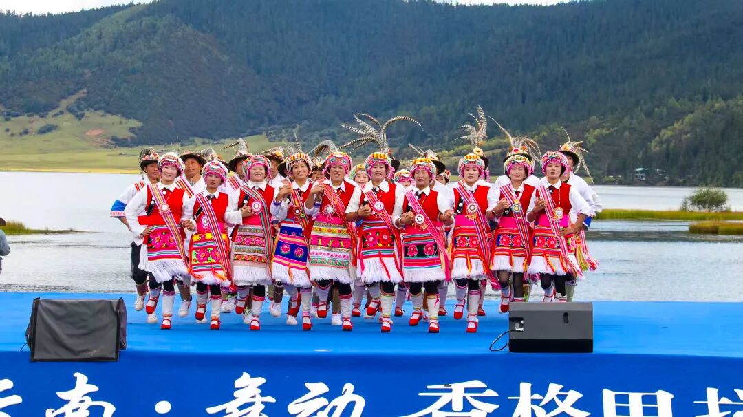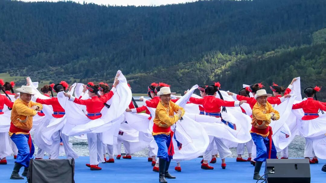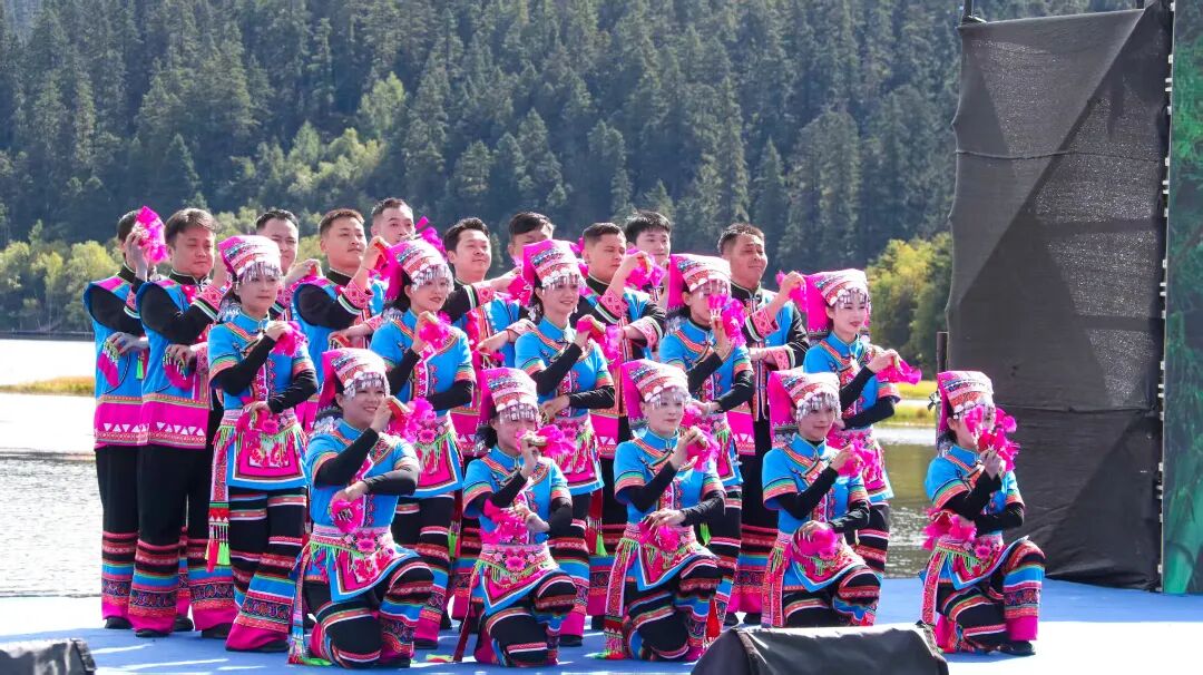 9月28日上午,世界的“香格里拉”文化旅游节系列活动之嗨动100天·燃爆普达措活动在香格里拉市普达措景区属都湖畔启动,各地嘉宾与游客欢聚一堂,共赴这场融合民族文化与生态风光的盛会。 10时许,启动仪式正式拉开帷幕。马帮文化展演率先登场,非遗传承人现场展示马鞍制作、驮包打结等传统技艺,随着悠扬的山歌传来,再现了马帮商队在崇山峻岭间穿梭的传奇历史,让现场观众沉浸式感受普达措深厚的文化底蕴,让游客们亲身体验茶马古道上马帮汉子的生活日常;紧接着,香格里拉的特色舞蹈《建塘锅庄》登场,舞者们以豪迈舞姿传递热情,瞬间点燃现场气氛。