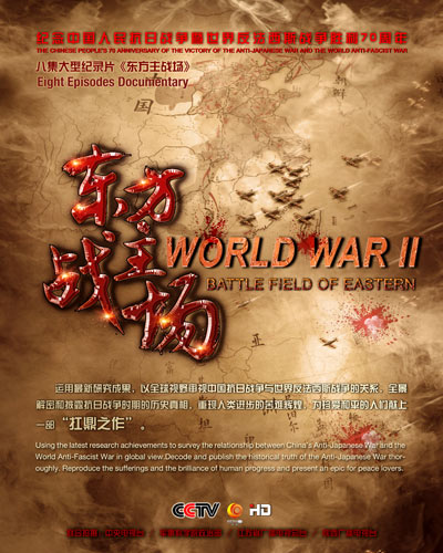 大型纪录片《东方主战场》海报 图片来源:央视网 《东方主战场》共8集,分别是《东方危急》《共赴国难》《浴血坚持》《艰苦卓绝》《同盟抗敌》《民族血脉》《大地坚韧》和《正义必胜》。由中宣部、国家新闻出版广电总局、中国人民解放军总政治部联合指导,中央电视台、军事科学院联合摄制,江苏省广播电视总台、陕西广播电视台协助摄制。 70年前,80多个国家和地区、2200万平方公里的大地上,全球约20亿人口被卷入无情的战火,经历正义与邪恶的殊死搏斗,中国人民最终取得了抗日战争的伟大胜利。在世界反法西斯战争中,中国人民抗日战争开始时间最早,持续时间最长,消灭日军最多,付出代价最大,是世界反法西斯战争的东方主战场,对彻底战胜日本法西斯起到了决定性作用。 为了全景式展现这一光辉历史,该片自今年1月启动以来,秉持“铭记历史、缅怀先烈、珍爱和平、开创未来”的宗旨,力争打造出一部能够代表国家观点、国家立场,具有国际视野和国际水准的“扛鼎之作”。 据了解,该片的学术文本由军事科学院组织专家撰写,前后历时两年,党史、军事学、历史学等多方面权威专家参与。在历史观点正确、史实准确无误的基础上,撰写电视脚本。与此同时,7个摄制组奔赴全国22个省区市,采访抗战老兵等见证者100余人,抗战遗址、遗迹187处,总行程近2.5万公里。同时,摄制组在俄、日、美、英采访了数十位权威专家。 作为历史题材纪录片,真实全面且鲜为人见的独家影像资料的拥有与艺术呈现至关重要。为此,剧组与中央档案馆、国家博物馆、国家图书馆、中国人民抗日战争纪念馆、中国第二历史档案馆、中央新影集团等单位建立联系,搜集了130余部相关纪录片及美、俄、日等国家关于二战的影像和图片资料,为艺术表达与呈现中国作为“东方主战场”提供了强有力地支撑。