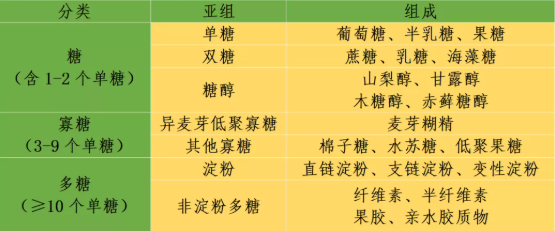 什么是糖类? 碳水化合物,俗称“糖类”,是人体需要的三大宏量营养素之一,膳食中主要分为糖、寡糖、多糖这三大类。
