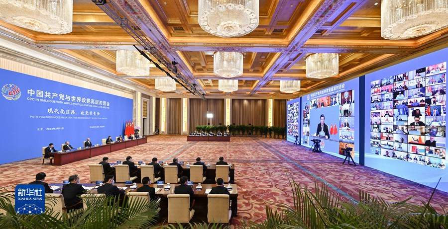 3月15日,中共中央总书记、国家主席习近平在北京出席中国共产党与世界政党高层对话会,并发表题为《携手同行现代化之路》的主旨讲话。新华社记者 殷博古 摄 习近平强调,中国共产党将致力于加强政党交流合作,携手共行天下大道。愿同各国政党和政治组织深化交往,不断扩大理念契合点、利益汇合点,以建立新型政党关系助力构建新型国际关系,以夯实完善全球政党伙伴关系助力深化拓展全球伙伴关系。中国共产党愿继续同各国政党和政治组织一道,开展治党治国经验交流,携手同行现代化之路,在推动构建人类命运共同体的大道上阔步前进。 习近平最后指出,人类社会现代化的征程难免遭遇坎坷,但前途终归光明。中国共产党愿同各方一道努力,让各具特色的现代化事业汇聚成推动世界繁荣进步的时代洪流,在历史长河中滚滚向前、永续发展! 南非非洲人国民大会主席、总统拉马福萨,南苏丹苏丹人民解放运动主席、总统基尔,尼加拉瓜桑地诺民族解放阵线总书记、总统奥尔特加,委内瑞拉统一社会主义党主席、总统马杜罗,塞尔维亚前进党主席、总统武契奇,蒙古人民党主席、政府总理奥云额尔登,东帝汶人民解放党主席、政府总理鲁瓦克,巴布亚新几内亚潘古党领袖、政府总理马拉佩,格林纳达民族民主大会党领袖、政府总理米切尔,俄罗斯统一俄罗斯党最高委员会主席格雷兹洛夫,哈萨克斯坦“阿玛纳特”党主席科沙诺夫,多哥保卫共和联盟总司库、国民议会议长采冈等在对话会上致辞,热烈祝贺中国共产党第二十次全国代表大会胜利召开,热烈祝贺习近平再次当选中共中央总书记、国家主席、中央军委主席,热情赞誉新时代十年的历史性成就、历史性变革,积极响应习近平总书记在主旨讲话中提出的政策主张,表示愿同中国共产党一道,在现代化进程中发挥好引领和推动作用。 中共中央政治局常委、中央书记处书记蔡奇出席对话会,并作总结讲话。他指出习近平总书记发表主旨讲话,系统阐述了中国共产党关于探索现代化道路的认识,提出了全球文明倡议,表达了中国共产党愿同各国政党一道,推进具有本国特色的现代化事业、促进全球文明交流互鉴、推动构建人类命运共同体的真诚愿望,展现了中国共产党直面人类共同挑战的政治勇气和责任担当,为推动世界现代化进程、促进人类文明进步提供了中国方案。中国共产党愿同各国政党和政治组织共同担负起探索现代化道路、推动文明进步的政党责任,在推动构建人类命运共同体的征程中携手同行。 王毅、尹力、李书磊、秦刚等出席对话会。 中国共产党与世界政党高层对话会以“现代化道路:政党的责任”为主题,来自150多个国家的500多个政党和政治组织的领导人出席会议。 |