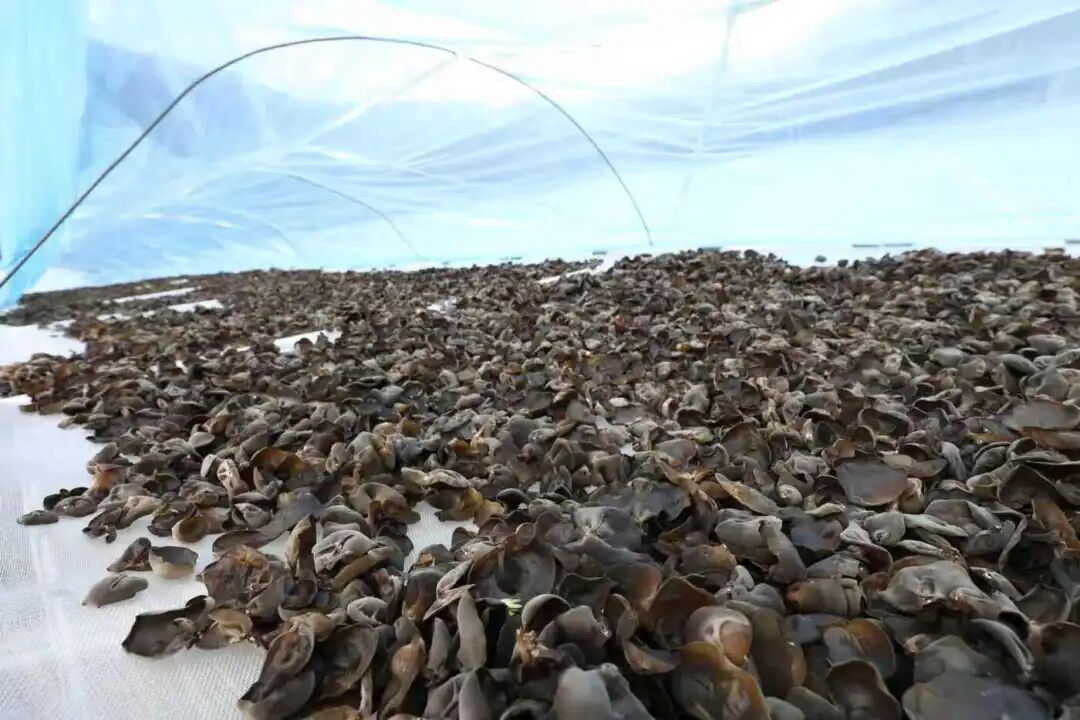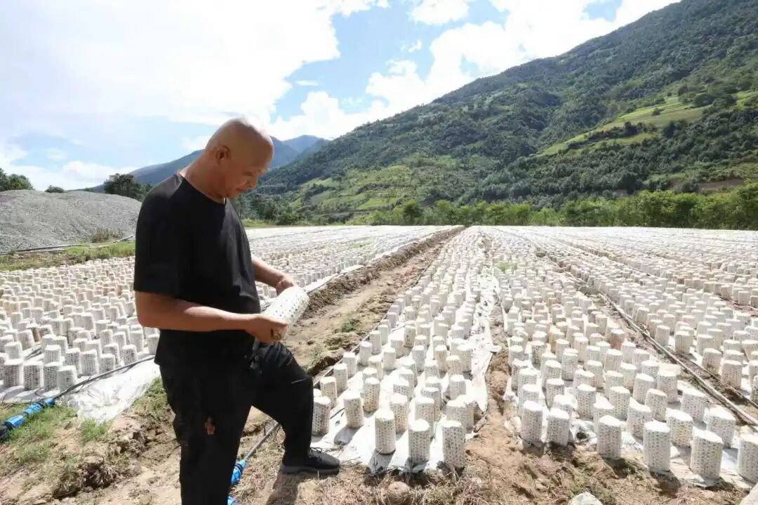 近日,在迪庆藏族自治州德钦县叶枝镇食用菌基地,一派忙碌的景象。务工的村民们在基地里收、晾晒木耳。但在一年前,这里还是一片毫无生机的场地。