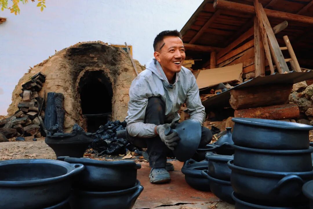 走进香格里拉市尼西乡汤堆村市级非遗代表性传承人拉茸肖巴家,刚出炉的黑陶器具散发着泥土与火焰交融的温润气息,邮政小哥正熟练地将炊具、艺术摆件等搬运上车,这些承载着藏族传统技艺的黑陶产品即将寄到昆明、成都等地的客户手中。“现在不仅做传统炊具,还创新了不少品类,截至目前已经接待4000多人次前来体验黑陶制作,越来越多的村民也跟着加入,日子越过越有奔头。”拉茸肖巴笑着说。