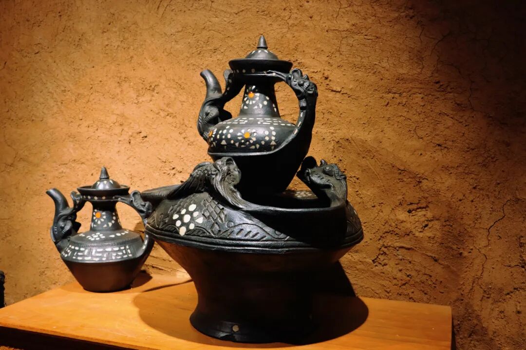 在黑陶技艺实现活态传承的同时,汤堆村乡村旅游业态持续迭代升级。桃源居民宿老板陈德永把藏房改造成集住宿、餐饮、咖啡于一体的综合空间,从墙面装饰到餐具陈设都融入黑陶元素,让游客沉浸式感受黑陶魅力。“以前游客只能体验黑陶,现在能在这里一站式体验吃住行游娱,生意比以前红火多了。”胡子花白的陈德永开心地说。在汤堆村的另一头,旅居者缪伟开的老藏房咖啡屋以黑陶杯具为特色载体,销售当地特色饮品、食物,成为区域内乡村旅游的标志性打卡点。