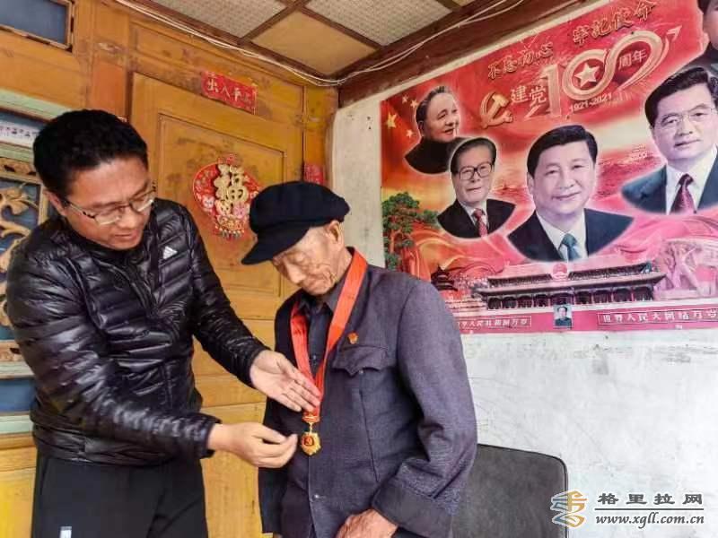 香格里拉网讯 6月30日下午,正值2022年“七一”建党节前夕,迪庆香格里拉经济开发区党委书记、管委员会领导班子怀着对前辈老党员的深情厚意,代表开发区党委管委会,到新仁村委会杨家村村民小组,看望慰问50年党龄的老党员杨伯远老人,亲自为他戴上了50年党龄纪念章。